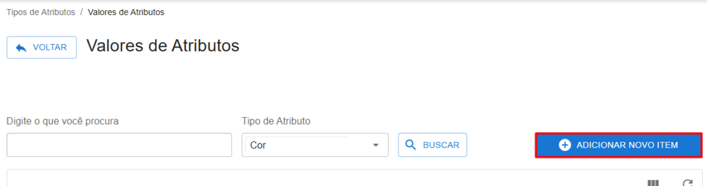 - Nome do Valor: Nome do valor que será cadastrado: Exemplo: Branco, Preto, Rosa..