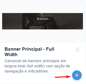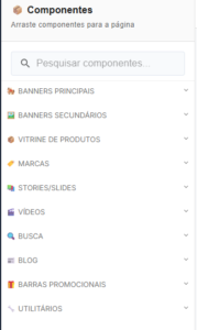 3- Para adicionar um novo componente a listagem principal, basta localizar o componente desejado, (aqui para exemplo, estou usando o Componente de banner Principal) e clicar no “+” para adicionar a última posição, ou segure e arraste com o mouse até a posição desejada:
