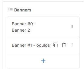 6.1- Para adicionar, basta clicar no botão de “+”, e irá adicionar mais um banner e clicando para expandir, terá o local de importação de imagens para Desktop e Mobile: